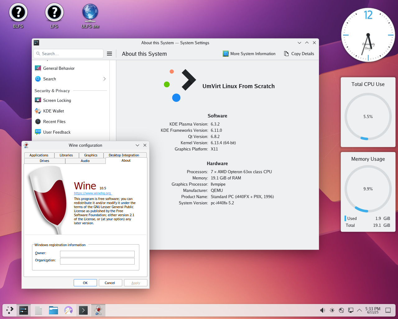 - Optional limited Windows applications support with WINE.
